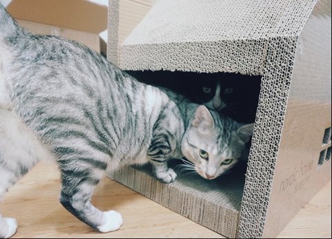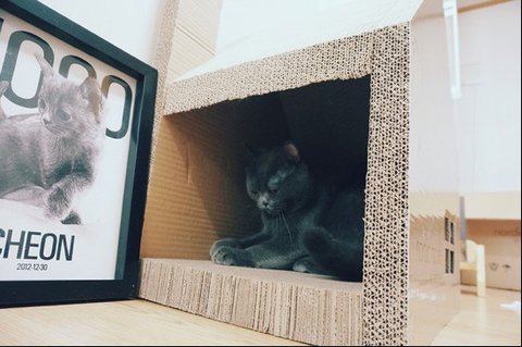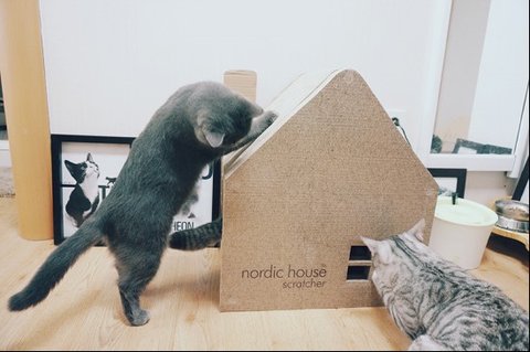 고양이의 긁기 본능을 제대로 충족 시켜 줄 스크래쳐로 이루어진 하우스!