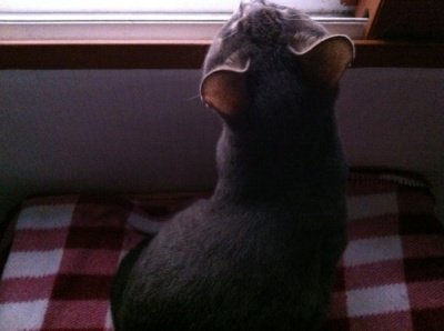2. 단색의 회색 고양이로 보임
