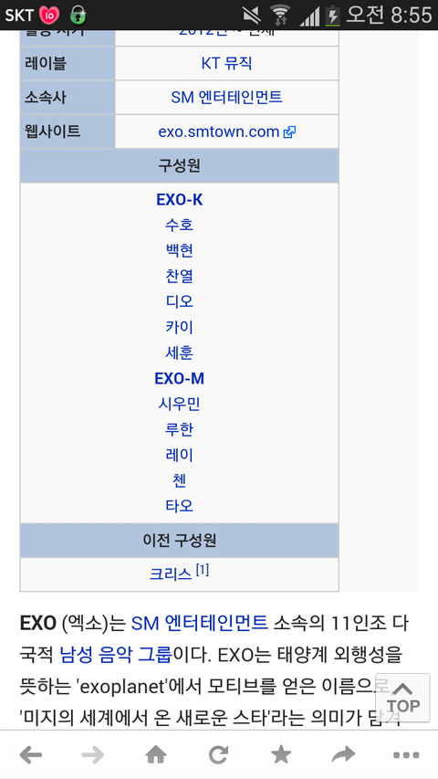 야 위키백과 엑소치면 이렇게나옴ㅋㅋㅋㅋ