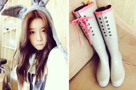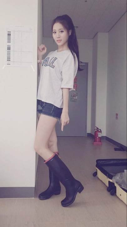 장마철 필수아이템인 레인부츠가 몸매를 더 돋보이게 코디 함