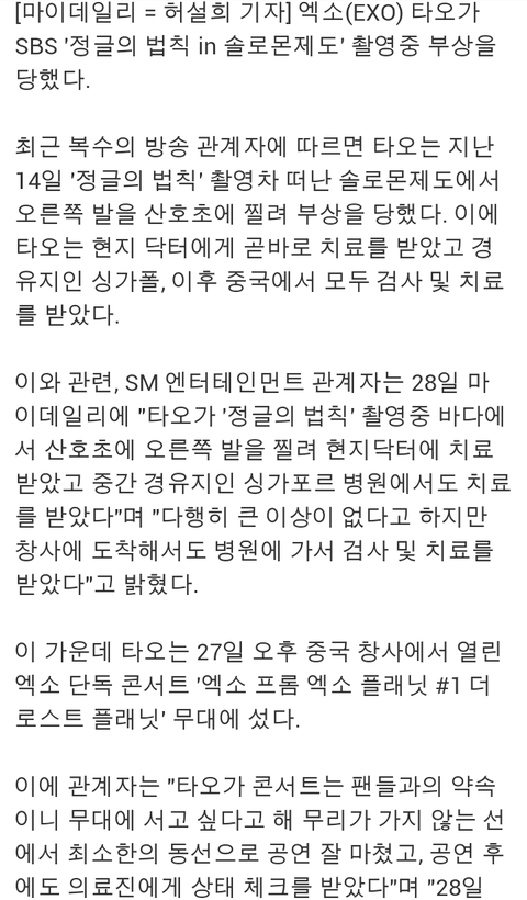 타오다친거 산호초에 찔린거래...타어야... ㅜㅜ