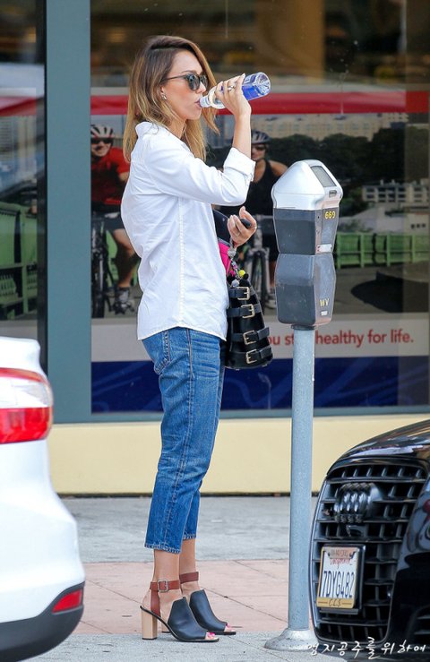 길거리에서 물먹는것마저도 화보로 만들어버리는 제시가알바의 위엄b
