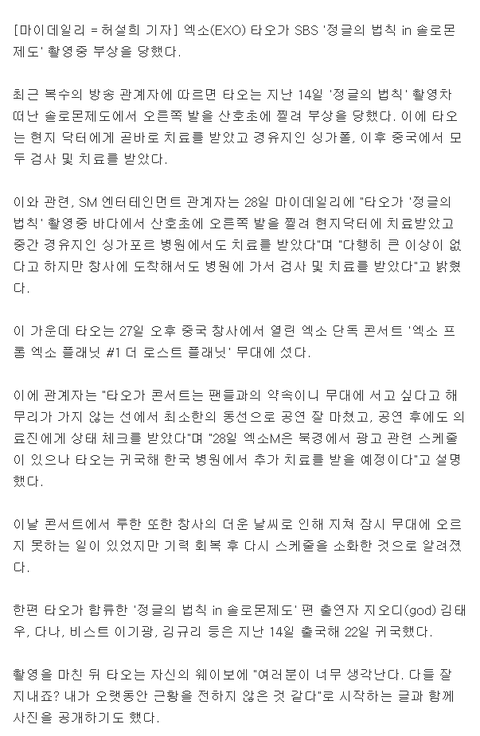 엄청 주의 받았었는데... ㅠㅠ 타오야 한국와서 꼼꼼히 검사 받아 ~!!