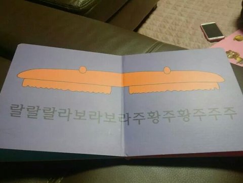 이거 우리 애기한테 읽어주니까 애기 동공이 흔들렸음.ㅋㅋ 말그대로 멘붕이 얼굴에 쓰여있었음.ㅋㅋㅋ