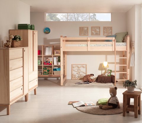 아이방을 엄마와 아이가 함께 꾸미고, 원목 가구를 배치함으로써, 아이의 창의력과 학습능력을 높이고, 아이가 원목을 매일 접하면서 아이의 사고발달에 긍정적이다.