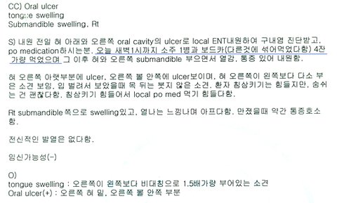 그 내용이 기재된 응급실 기록지의 일부를 올려드리니 확인해 주세요