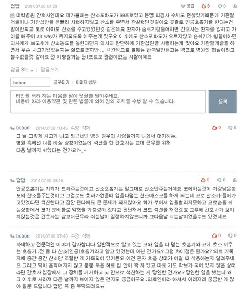 제가 본문에서 말한 호흡기는 기계로 하는 호흡기가 아닌 산소만 주는 호흡기라시며