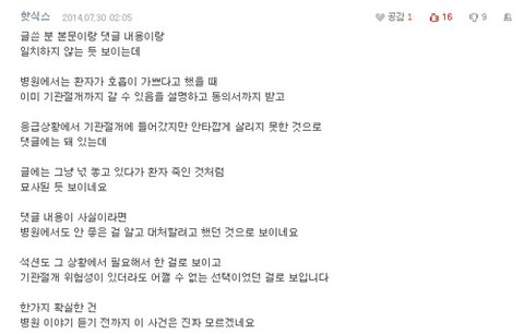 병사로 처리하겠다던 그 당당함은 다 어디로 갔는지 본인들의 과실을 조금 인정하는 듯 하며