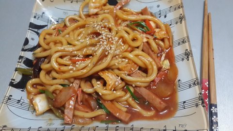 1. 우동삶기-라면 풀듯이 풀지마세요ㅎㅎ 면이 다 끊어져 버려요ㅠㅠ 혼자 풀어질때까지 기다리고 익으면 찬물에 헹구기!