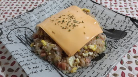 양파를 제일 먼저 볶는데 양파가 투명해지기 시작하면 햄 이랑 계란 후추도 넣어줘요ㅎㅎ 맛있어짐ㅎㅎ그러고 밥과 쪽파 굴소스 한숟가락 넣고 볶아요 그리고 치즈올려주면 끝ㅎㅎ 맛있어용ㅎㅎㅎㅎ♡♡굴소스는 쓸때 많으니까 사두면 좋아요!!