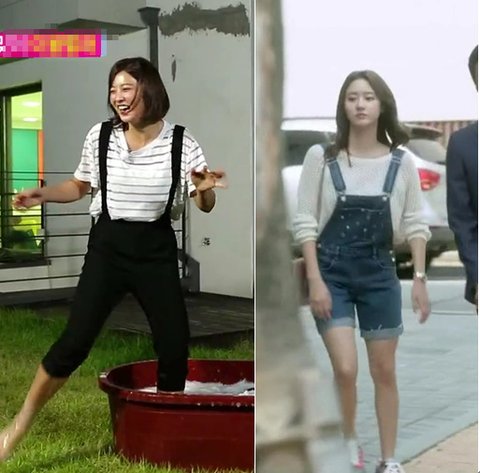 한그루는 데님 멜빵으로 발랄한 패션보여줬음