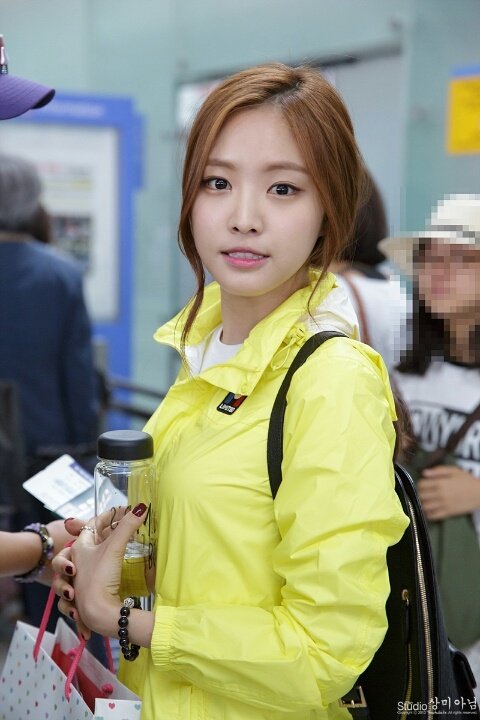 노란 병아리같은 손나은의 아웃도어 공항패숀ㅋㅋ