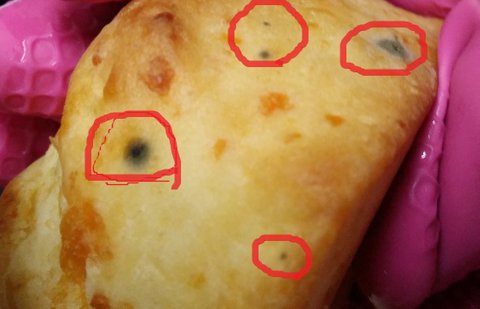 이 사진은 제가 스콘을 창고에 7일정도 묵혀둔 곰팡이 핀 스콘입니다. 빨강색 점이 짐