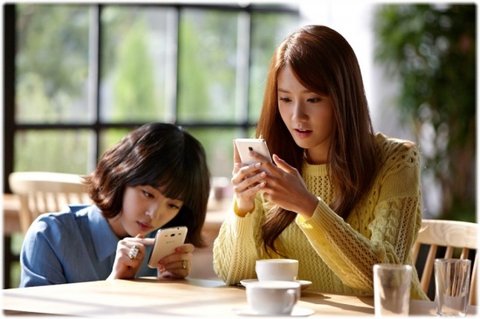 핸드폰네 빠져있는 설리-윤아