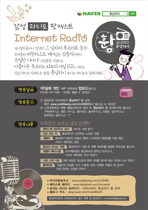 훈남하이 라디오 듣기 : www.podbbang.com/ch/6583