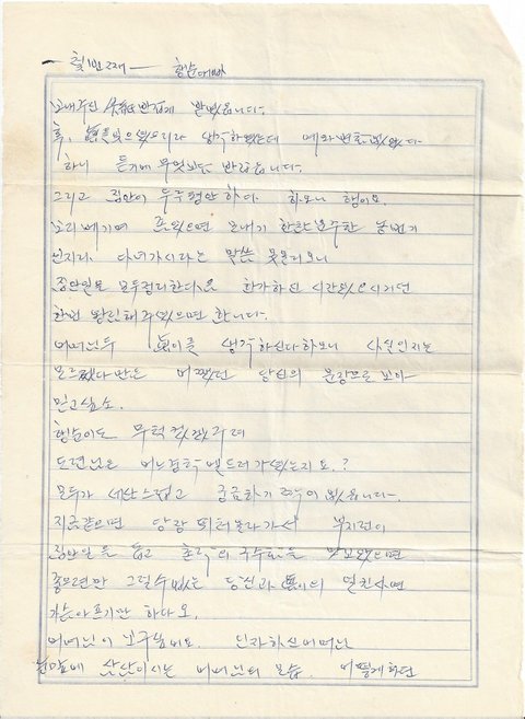 숨겨두었던 이 편지와 다른한통의 편지만 가지고 계시답니다.