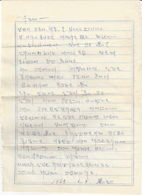 나중에 알게 되었지만 할아버님의 결혼하신 사모님께서 그 이후 그분의 편지를