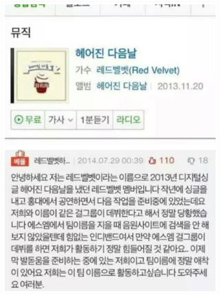sm레드벨벳 그룹명 표절!