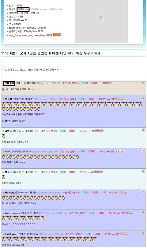 저사람 닉네임 열애설이 아니라 다 구설수에오른사람 말하는거아닌가? 열애설도 구설수에 하나고 전효성은 라디오사건 태연은.. 민아도.. 사람들 입에 오르내리고 호불호 갈리게 된 가수들?..
