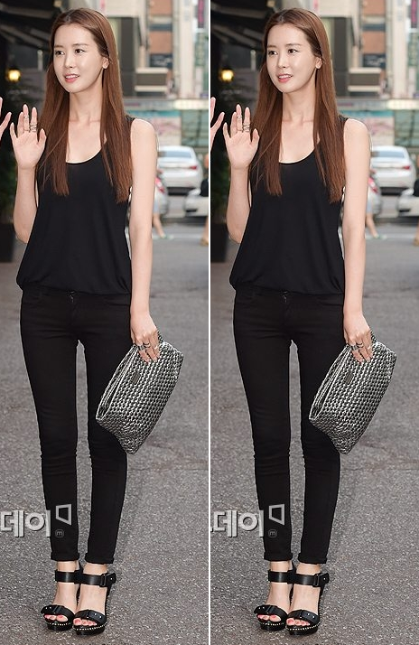 정말 기본적인 올블랙 패션에 샌들로만 포인트 줬는데