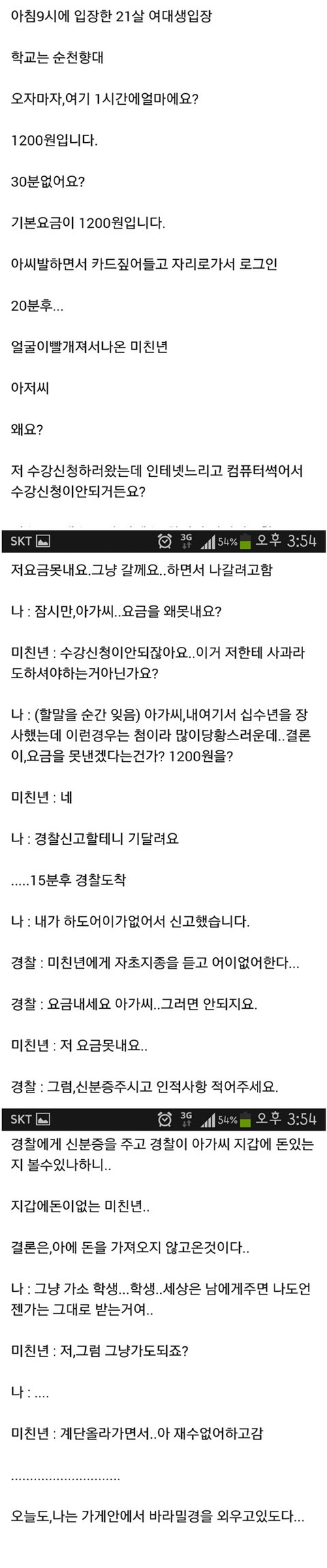 진짜 그지같은년 돈이 없으면 처 가지를 말던가 나한테 걸렸으면 죽탱이 한대 그냥 날렸다