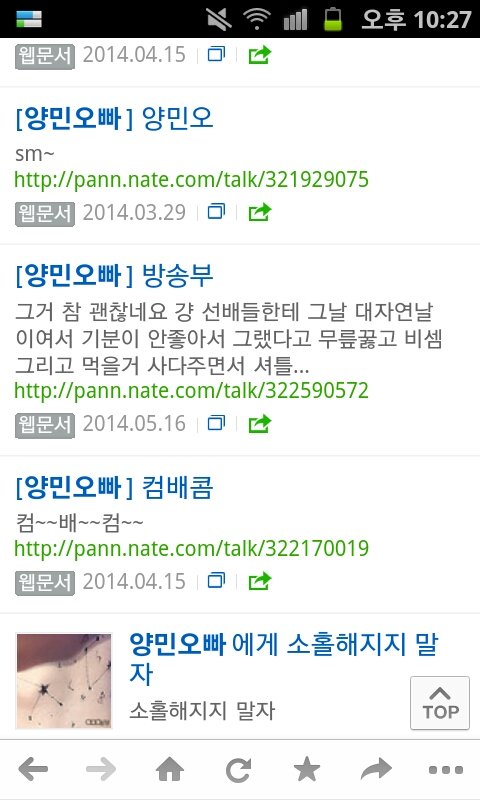양민오빠 톡에도 가봤다. 판에 검색도 해보고ㅋㅋㅋㅋㅋㅋㅋ
