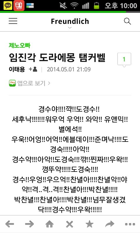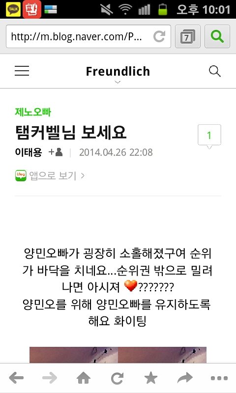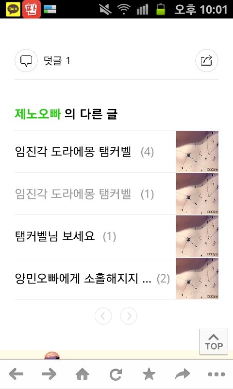 들어가봤더니 제노오빠라는 카테고리에 탬커벨 거리는 글이 있었음 댓글엔 탬커벨이 있었고 누르니 현재접속불가한 블로그라 떴었음.
