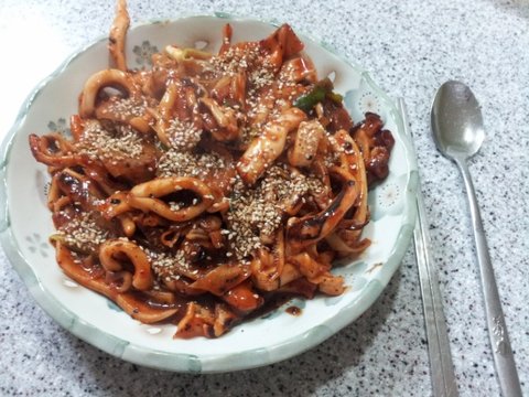 오징어 볶음이에요 이번에도 깨가 번식을 했네요 몰랐던 제 수전증을 발견했네요