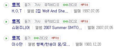 그동안 에스엠 아티스트가 낸 노래 제목 행복