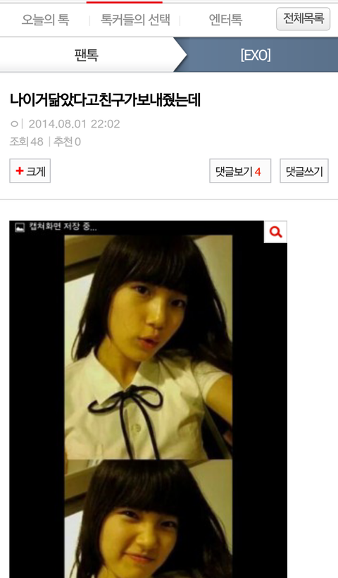 친구가 수지 사진 보냈다는 애야