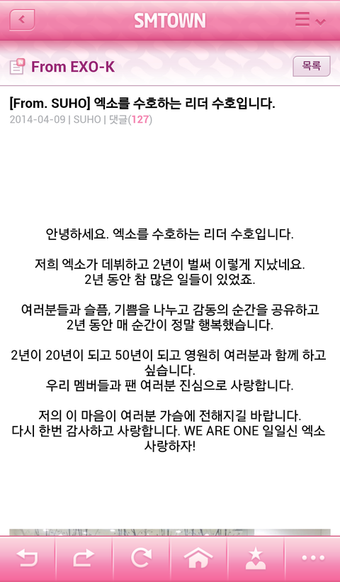 "2013년 11월 22일 한국 시간으로 11시 43분 34초, 지금 이 순간을 절대 잊지 않는 엑소가 되겠습니다. 엑소 사랑하자."