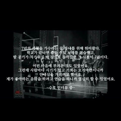준면이 아무 말 없이 있다가 니가 듣고싶은 말은 포기해가 아니잖아. 형이 한 말 듣고 더 확심이 생겨서 연습을 미친듯 함 그리고 6년차 되던 시기, 종대 백현 합류