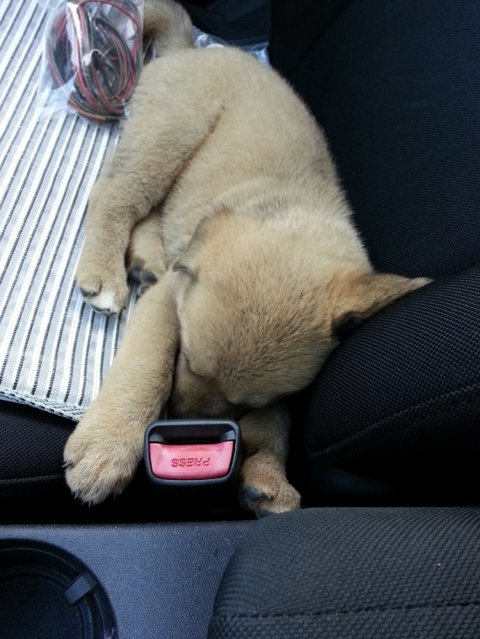 우리 멍멍이는 지치기도 했고, 처음타보는 차에 멀미가 나기도했고,