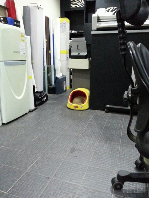 마침 근처 주민이 버려놓은 멍멍이집을 줏어놔 깨끗이 빨아놓고