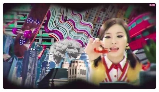 맨처음 노래를 소개하는 글자와 뮤비 오른쪽 상단에 찍혀있는 sm 로고도 역시 동성애자들의 상징인 핑크색으로 되어 있다.