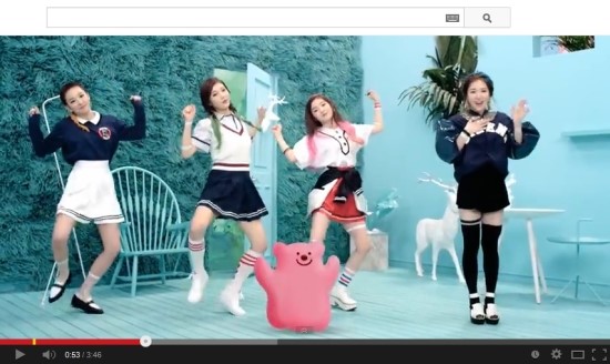 아래 장면을 보면 레드벨벳이 노래하는 방 안에 등장한 Pink Dot가 Pink Bear로 변하여 저들과 함께 춤추고 노래하고 있다. 곱게 차려 입은 두 멤버가 한 침대 위에 앉아 있는 장면(?)에선, 한쪽에 있는 TV에 Pink Bear가 등장한다.