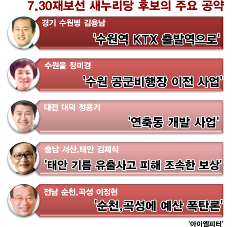 이번 7.30재보선에도 새누리당 후보들은 지역 현안과 민심을 사로잡을 수 있는 공약들을 내놓으며 유권자의 마음을 흔들었습니다.