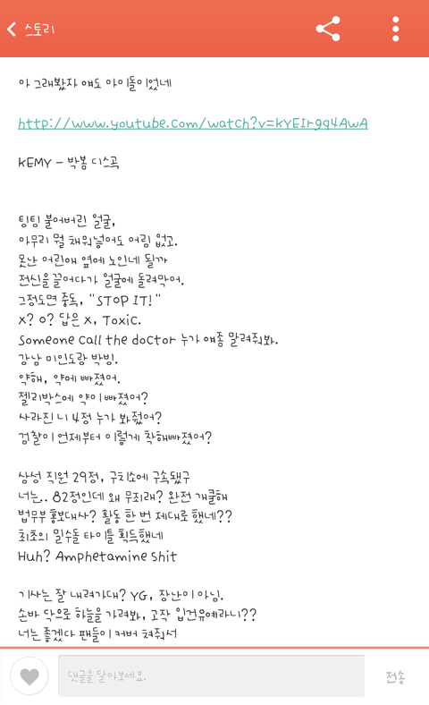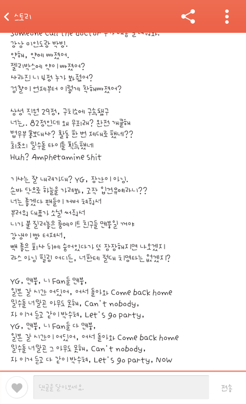 댓글들 보소 말투가 일진들이 따로 없네ㅋㅋㅋ 박봄은 범죈데 저정도 디스도 못하나? 고영욱 디스했으면 아니 감히 대선배님을 디스하다니ㅡㅡ 이랬을까?