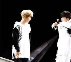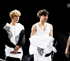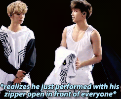 평소처럼 올리다가 무대인거 알고 놀라서 준면이한테 말하는거 같음 아니면 내려져 있어서 놀란건가??