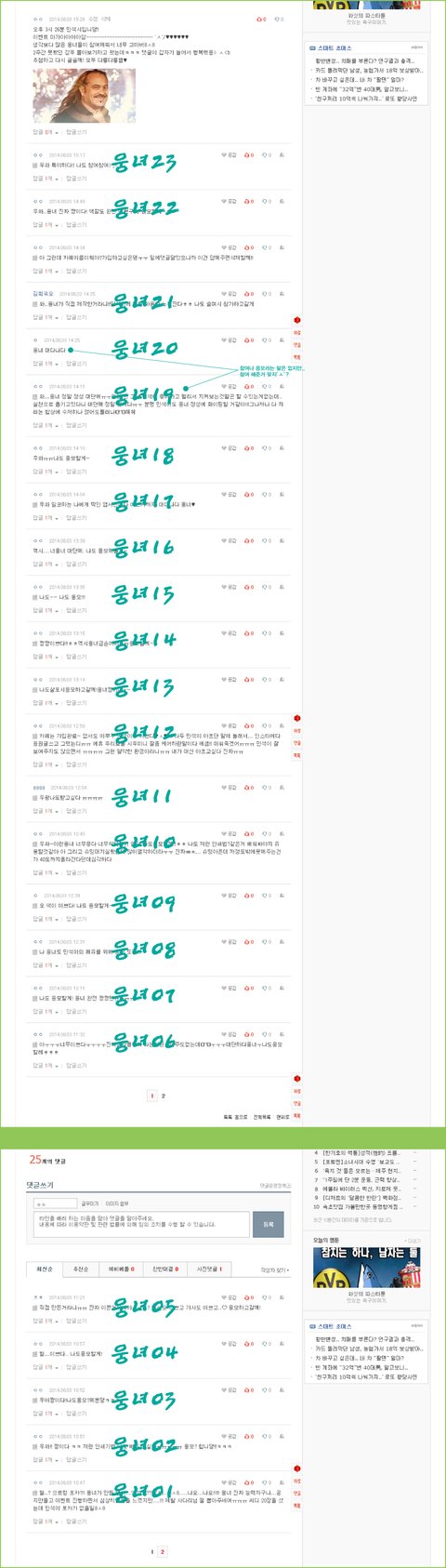 이 글을 본 14번 웅녀님은 저번 글에 있는 모든~ 댓글을 캡쳐해서