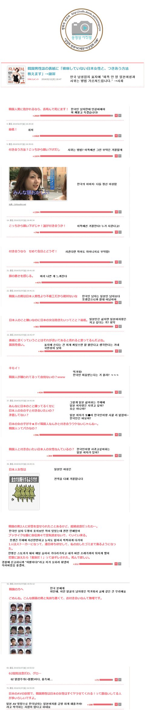일본애들이.저렇게 우리나라사람, 우리나라 까는건 기분이 나쁘지만.. 잡지에 저런 내용 실은 건 잘못된거 아닌가요.. 입장바꿔서 일본이 '한국여지 사귀는법' 같은걸 실었다고 해봐요. 우린 더 난리쳤을걸요. 그리고 저들이.하는말도 완전 100%틀린 말은 아니라는 점이 또 기분이 그렇네요.