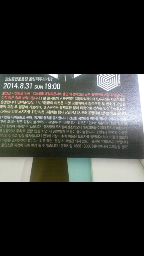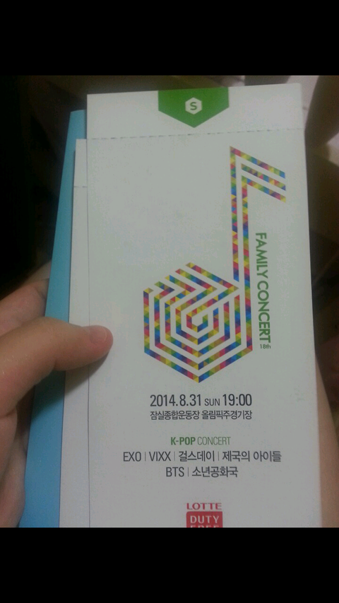 얘네 엄마께서 롯데면세점에서 아빠옷 산담에 이거 직원이 줬데 시바바알♥♥♥♥ 2개라서 친구랑 나랑 가기로함ㅎㅎ 이거 일반인들이 많이 오는 콘서트라서 응원하는거 주위에 나뿐이여도 조카 열심히 이그조 외치고 올께♥