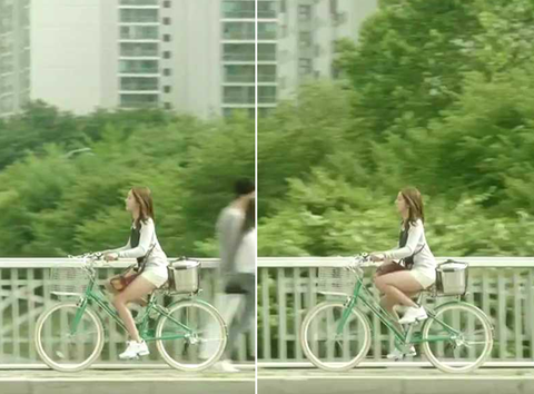 스카이 스니커즈 신고 자전거 타는 장면에서도