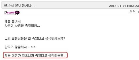 그럼 난징대학살도 이유가 있었어서?? 죽였겠지?? -_-?? 그럼 일본욕할이유가 없겠네.... 이유가 있었으니깐?