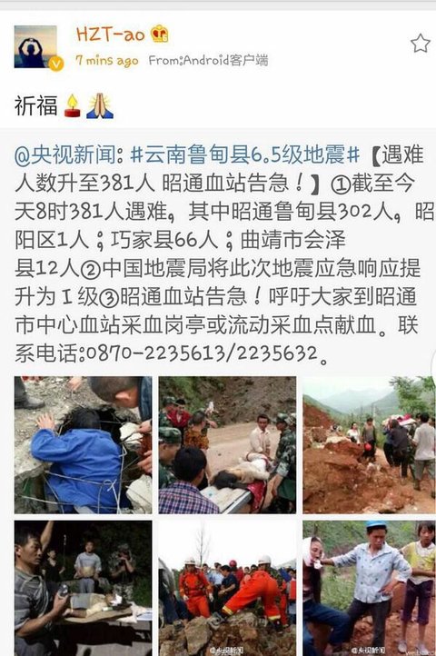 웨이보에 중국지진cctv뉴스 인용해서