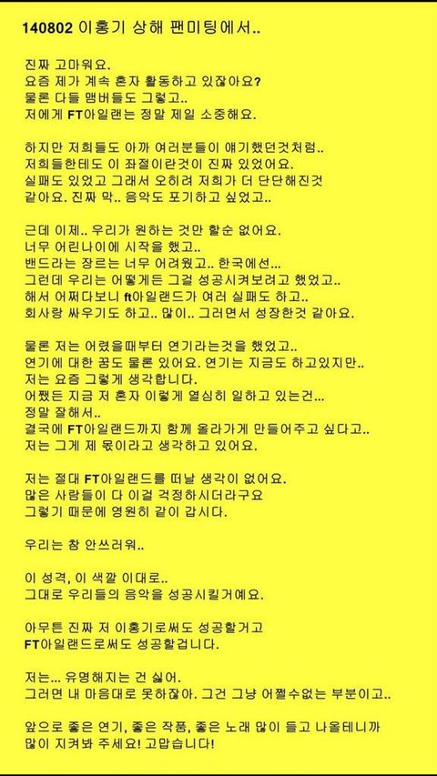 아직도 ft아일랜드에대해서 편견을가지신분들이많은거알아요 하지만 자작곡도많이내고 자신들의 음악을하려고 노력도많이하니까 사랑해주세요 ㅎㅎ