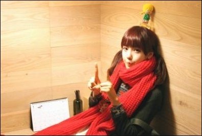 겨울에 단화신고 살짝비치는 검은색스타킹에 짧지않은 교복삘나는 스커트입고 위에는 어두운계열의 코트를 걸치고 목에 빨간 목도리한뒤 머리는 어깨위 단발머리.