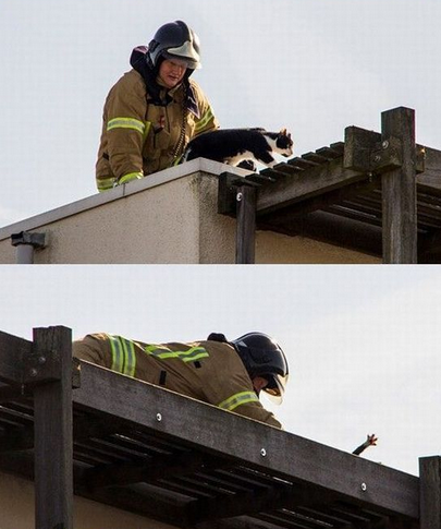 소방대원이 길냥이 구하는건데 고양이 손봨ㅋㅋㅋㅋㅋ