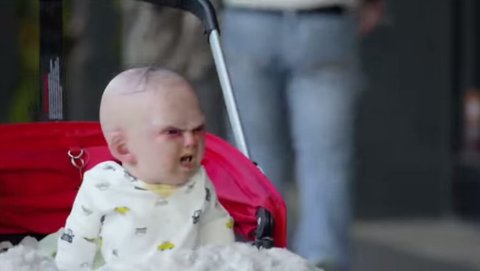 사람들은 신기해서 유모차를 들여봤다가 이런 애기가 소리를 지르며 벌떡!