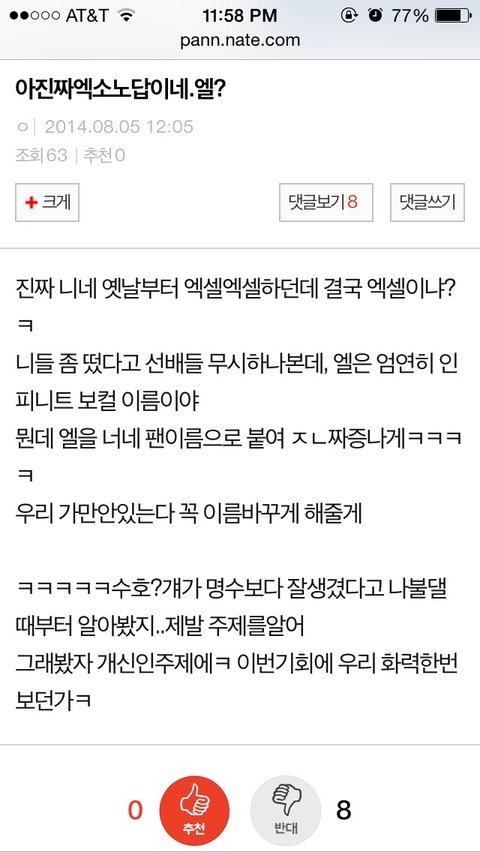 ㅇㅅ공카이름때매 어떤 무개념인슾이 시비텀..아 진짜 팬덤사이 더안좋아질듯
